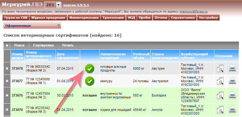 https://mercury.vetrf.ru/notification/ - Подсистема проверки подлинности выданных ВСД
