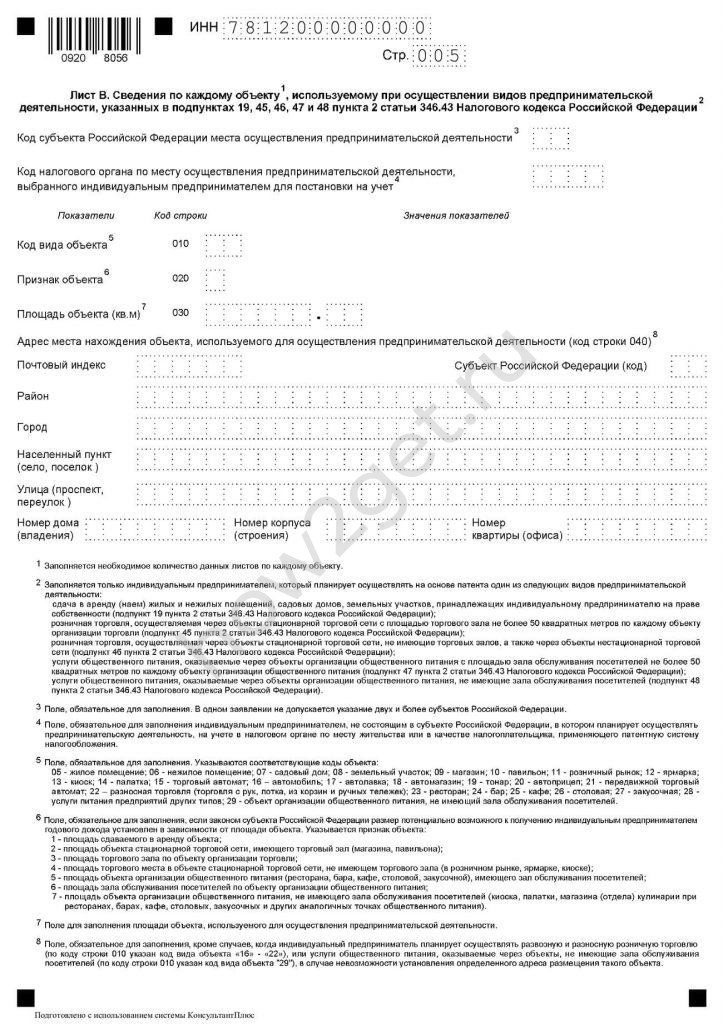 - форма на 5 листах заполняется в отношении каждого вида деятельности по отдельности;