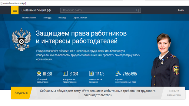 Всего же, согласно статистике сайта «Онлайнинспекция.рф», за период с 2013 по 2016 года было зафиксировано более двух с половиной миллионов случаев восстановления нарушенных прав в трудовой сфере. Кстати, с помощью данного ресурса любой желающий может обратиться в инспекцию труда, получить бесплатную консультацию по вопросам трудовых отношений или провести самопроверку своей организации.